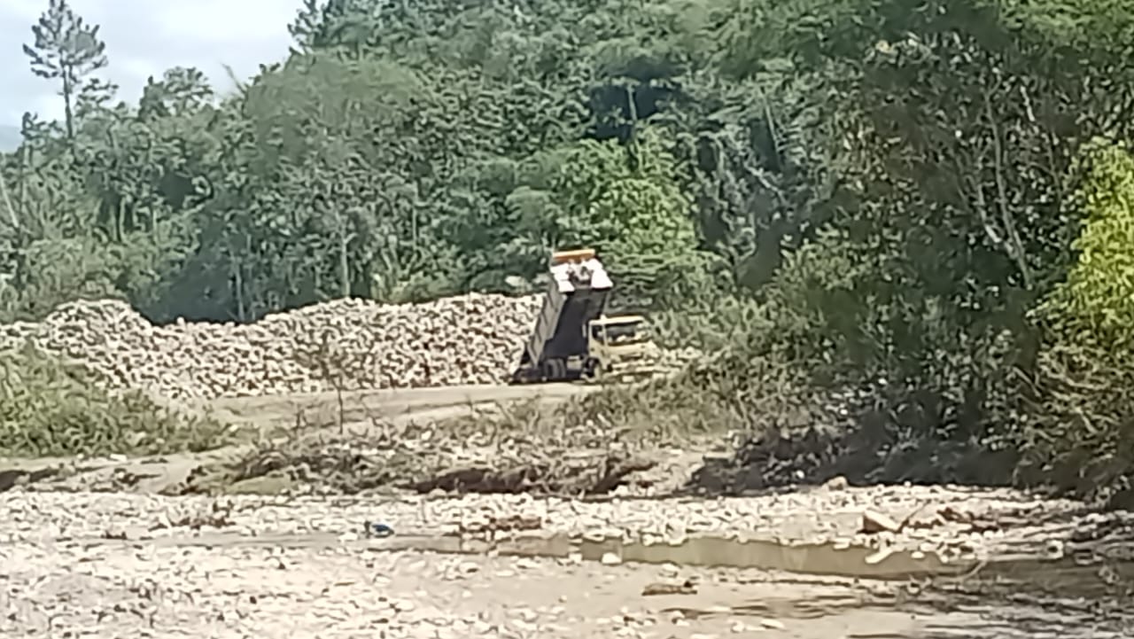 Selain itu, hasil pantauan tim di lapangan menunjukkan bahwa di basecamp PT Pelita Nusa terlihat tumpukan material dalam jumlah yang cukup besar, yang semakin memperkuat dugaan adanya aktivitas pengambilan material tanpa prosedur perizinan yang jelas.