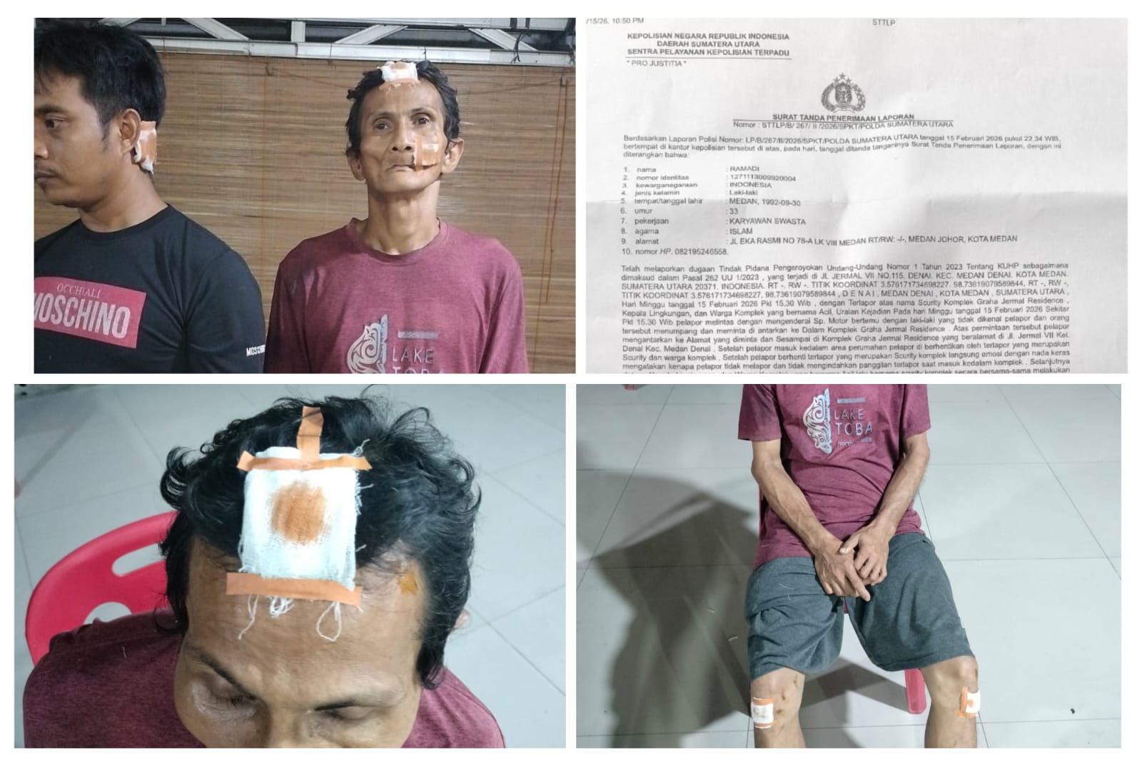 Liputan24.com,Kamis 19 Februari 2026, Medan – Kasus penggeroyokan diduga main hakim sendiri terjadi di Komplek Graha Jermal Residence yang dilakukan terlapor oknum security, warga Komplek bernama Acil dan kepala lingkungan pada hari Minggu tanggal 15 Februari 2026.