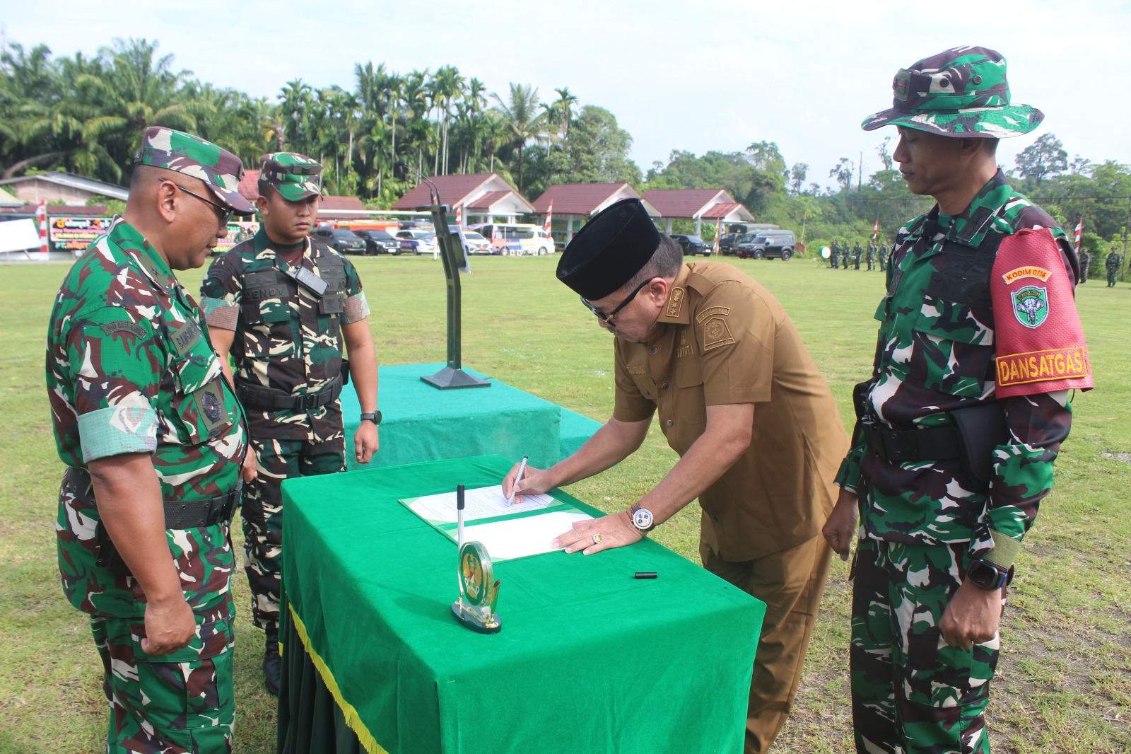 Upacara berlangsung khidmat dengan rangkaian kegiatan mulai dari penghormatan pasukan, laporan komandan upacara, pembacaan laporan hasil TMMD hingga penandatanganan berita acara serah terima hasil program kepada Pemerintah Kabupaten Nagan Raya.