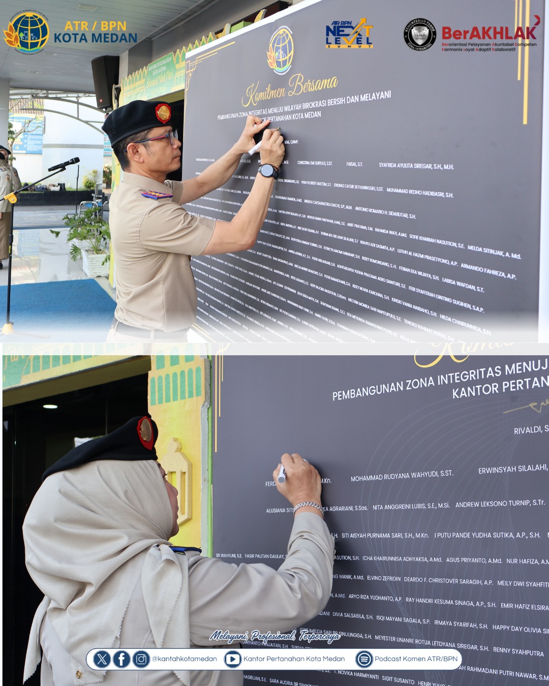Penandatanganan komitmen tersebut dilaksanakan di lingkungan Kantor Pertanahan Kota Medan dan diikuti oleh seluruh jajaran pimpinan serta pegawai. Kegiatan ini menjadi bentuk keseriusan institusi dalam mewujudkan pelayanan yang bersih dari praktik korupsi, kolusi, dan nepotisme, serta berorientasi pada kepuasan masyarakat.