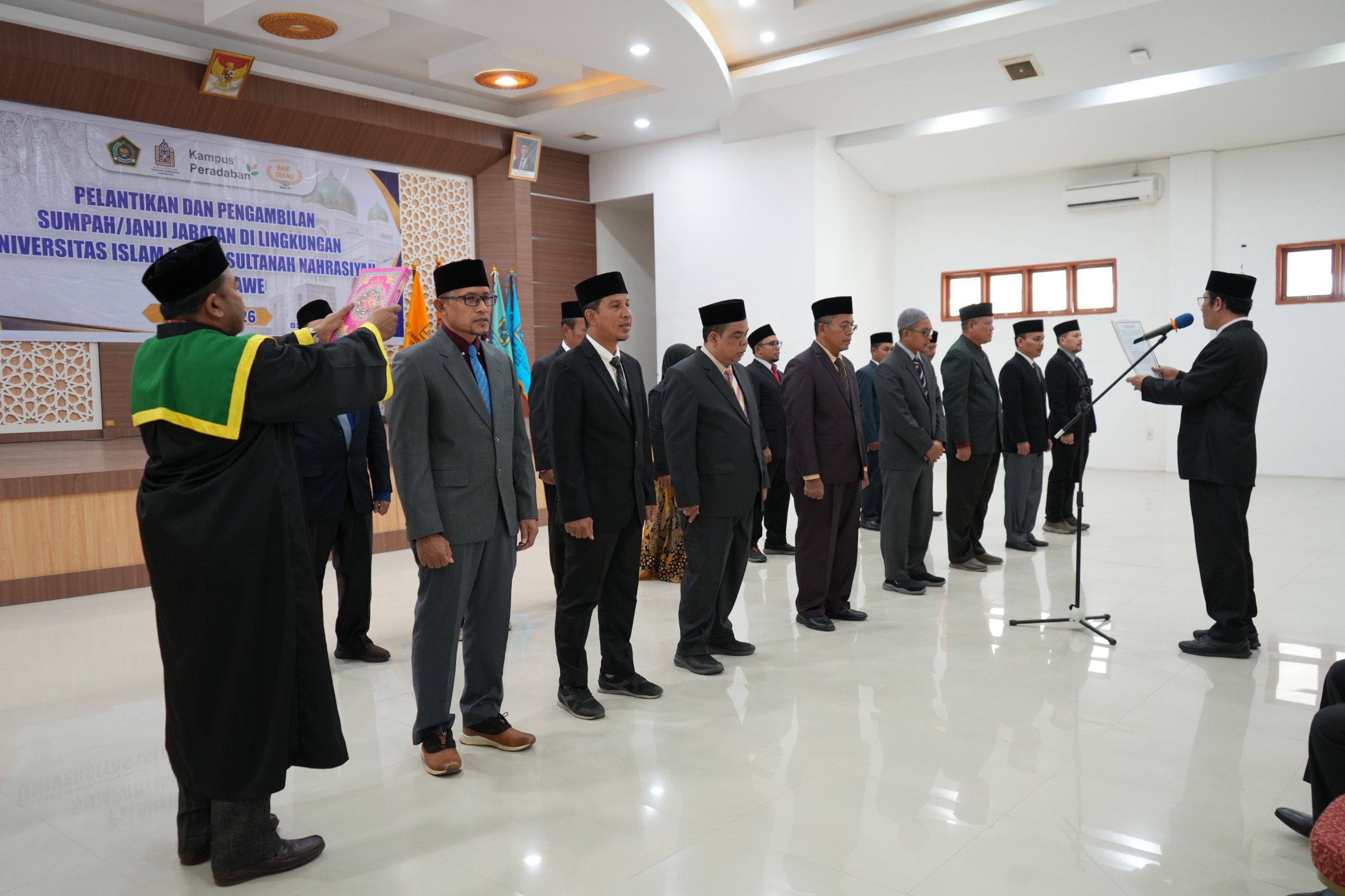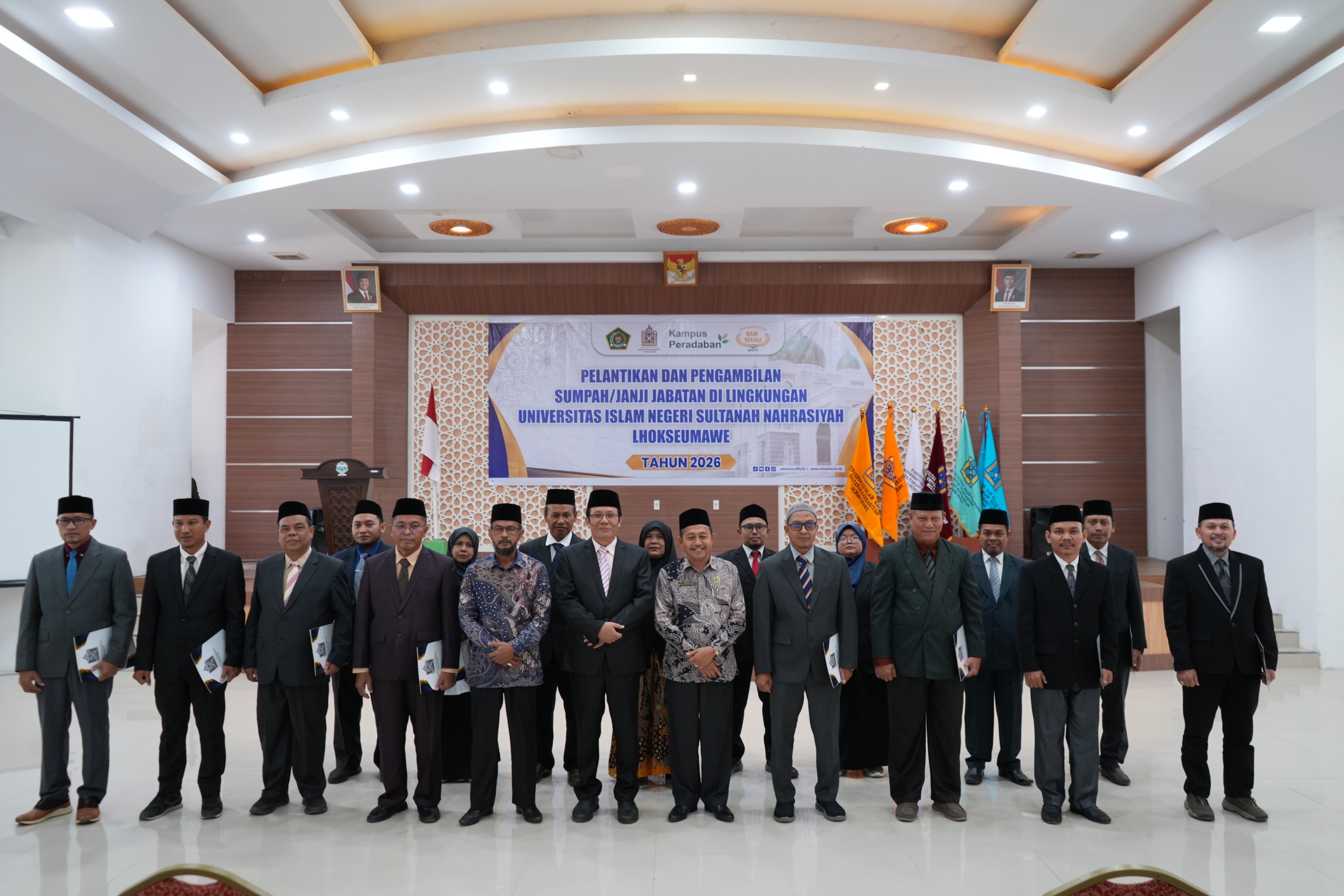 Lhokseumawe–1 April 2026–Rektor Universitas Islam Negeri Sultanah Nahrasiyah Lhokseumawe Prof. Dr. Danial, M.Ag. lantik 16 pejabat di lingkungan kampus setempat, proses pelantikan dilaksanakan di Aula Gedung Biro Rektorat kampus pada Rabu (01/04).