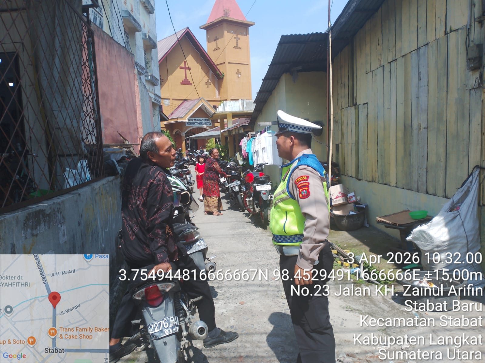 Langkat – Dalam rangka menjaga keamanan dan ketertiban masyarakat saat peringatan Wafat Yesus Kristus, Satuan Lalu Lintas (Satlantas) Polres Langkat bersama Sat Sabhara melaksanakan patroli gabungan di sejumlah gereja di wilayah Stabat, Jumat (3/4/2026).