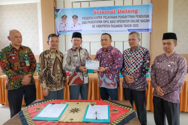 Guna mendorong Optimalisasi Layanan Online pada semua Nagari di Kabupaten Pasaman, Pemerintah Kabupaten Pasaman melalui Disduk Capil gelar kegiatan Bimbingan Teknis (Bimtek) Pelayanan Pendaftaran Penduduk dan Pencatatan Sipil (Dukcapil) Tahun 2025 bagi operator layanan online nagari se-Kabupaten Pasaman. Kegiatan ini dibuka langsung oleh Bupati Pasaman Welly Suhery bertempat di Aula PLHUT Kankemenag Lubuk Sikaping Kamis 07 Agustus 2025.