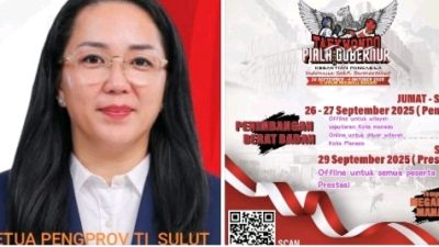 Cabor Taekwondo Sulawesi Utara dengan Ketua Pengprov Sulut Amelia Tungka, yg juga sebagai Bendahara Umum KONI Sulut, akan menggelar Kejuaraan terbesar di Sulut (29/09/2025)