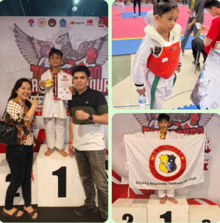 Renzo William Mentang yang masih duduk di bangku kelas 4a SD Khatolik 03 Frater DonBosco, menunjukkan bakat dan kemampuan yang luar biasa dalam cabang olahraga beladiri asal Korea ini. Dengan semangat juang tinggi, ia berhasil mengalahkan lawan-lawannya dan membawa pulang medali emas untuk sekolah dan Dojang Bharindo Tc.