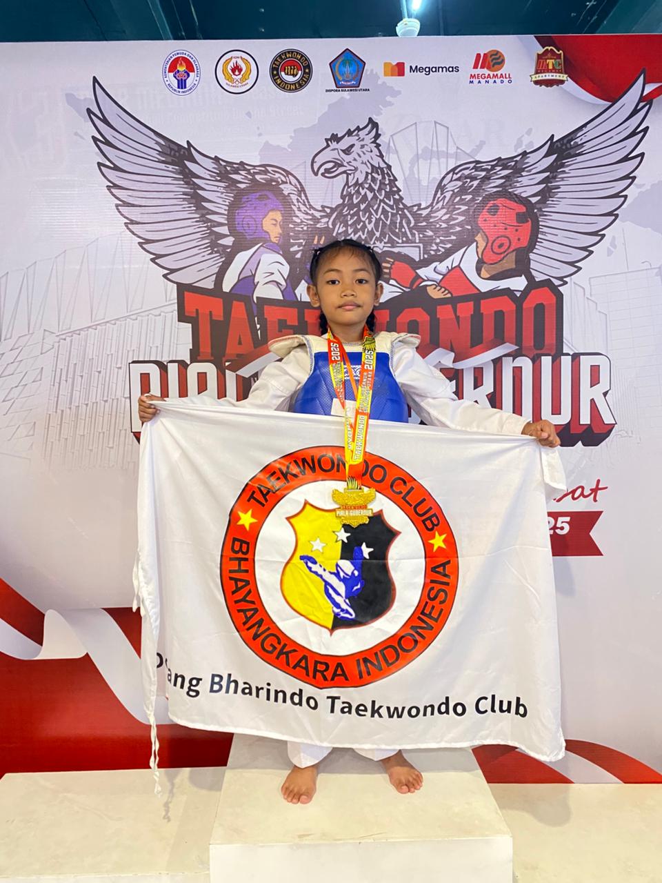 Kabar membanggakan datang dari dunia olahraga Sulawesi Utara! Seorang siswi berprestasi Umur 7 Tahun kelas 2  SD Garuda Kota Manado, anak dari  Bapak Hardinata Jacob dan Ibu Merry Habindatu berhasil meraih medali emas dalam Kejuaraan Taekwondo Gubernur Cup yang bergengsi. (2/10/2025)